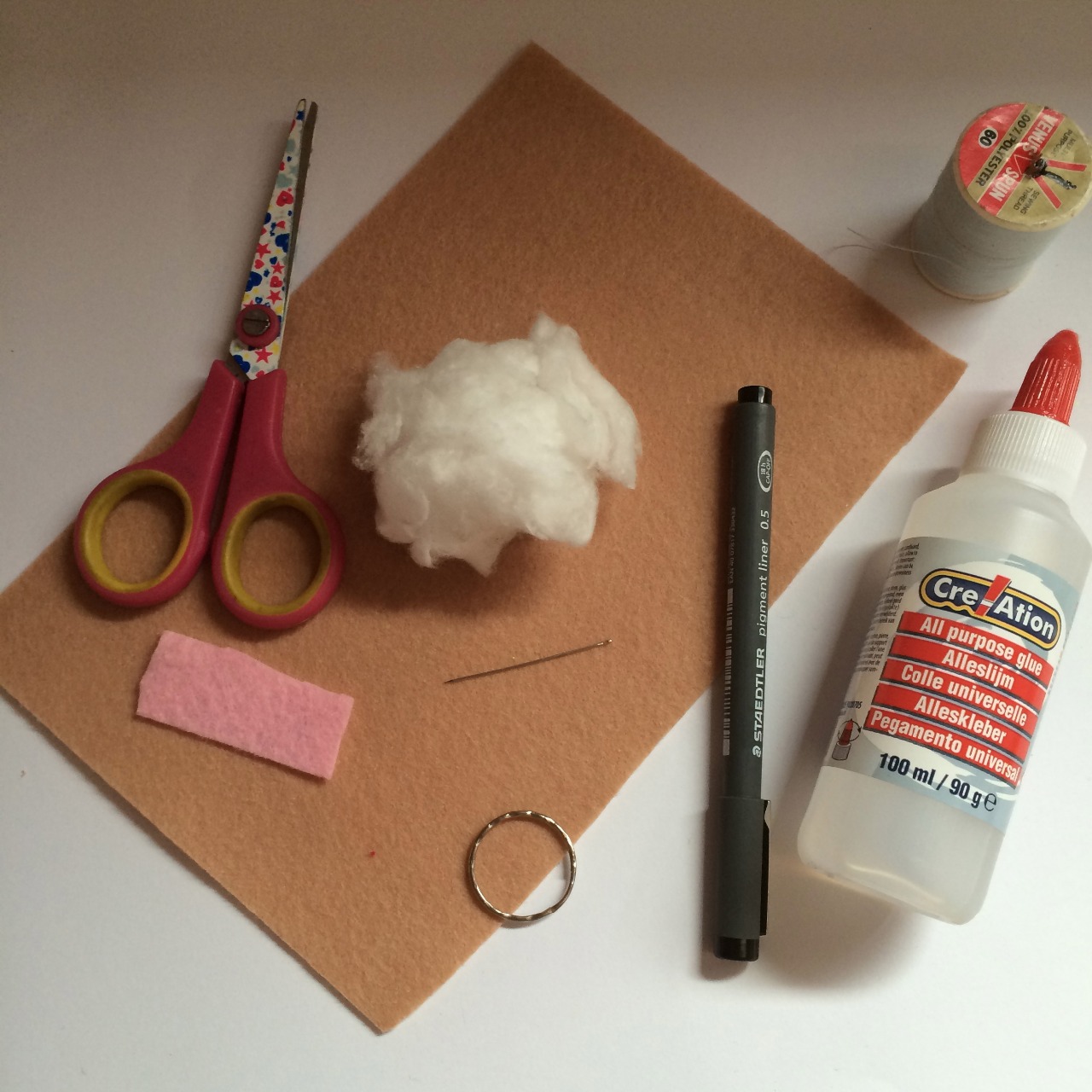 Stap 7: Knip een klein stuk vilt en naai het op het achterhoofd van je diertje en daarna het je het ringetje rond dat stukje vilt.