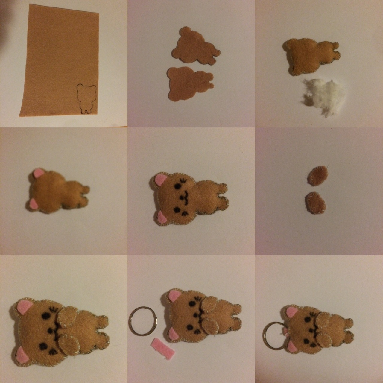 Stap 7: Knip een klein stuk vilt en naai het op het achterhoofd van je diertje en daarna het je het ringetje rond dat stukje vilt.